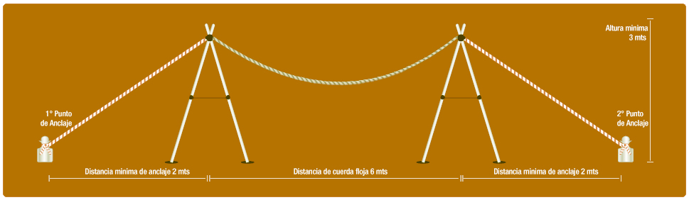Para el montaje de la estructura de cuerda floja se necesitan dos puntos de anclaje.